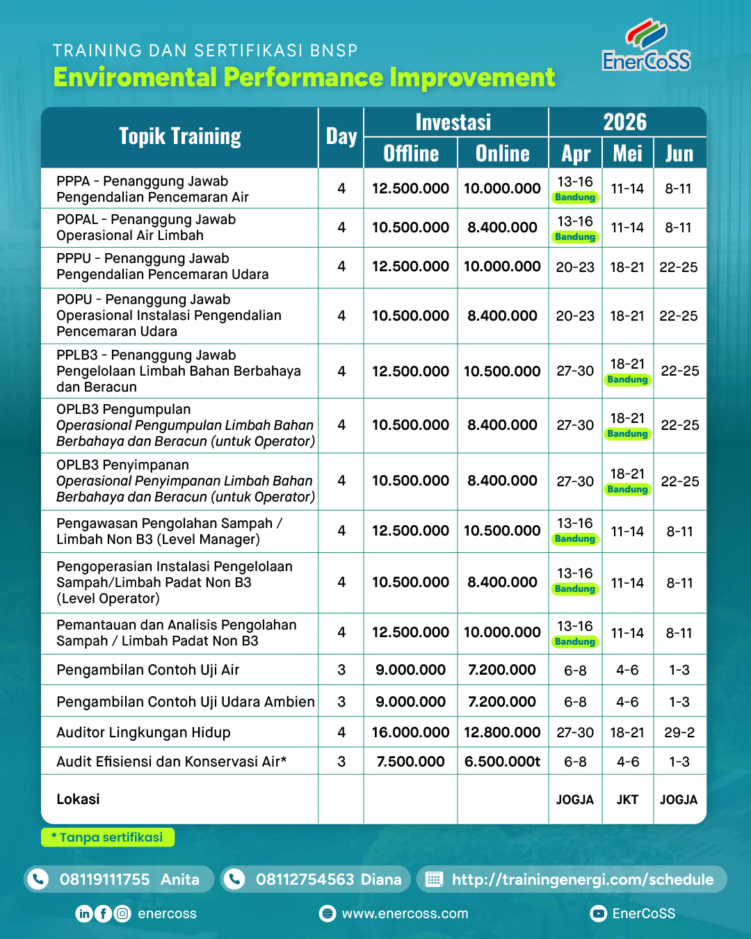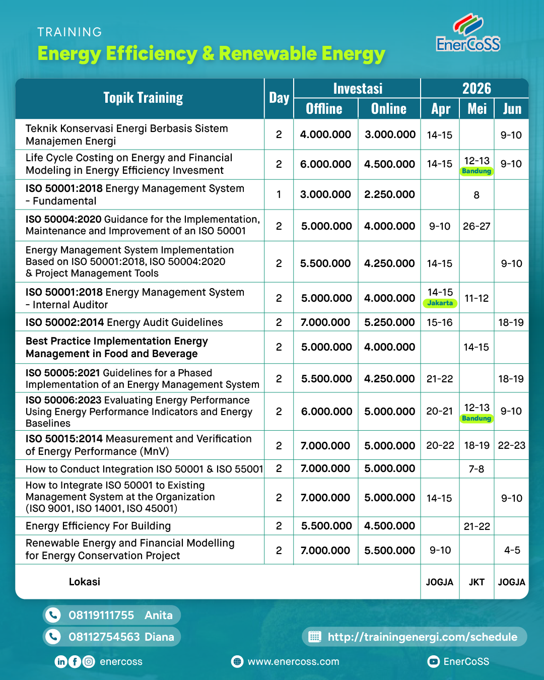 The training will help internal auditor to understand how to evaluate the EnMS effectiveness and identify potential system improvement to increase and sustain the energy saving achievement as result of EnMS implementation.