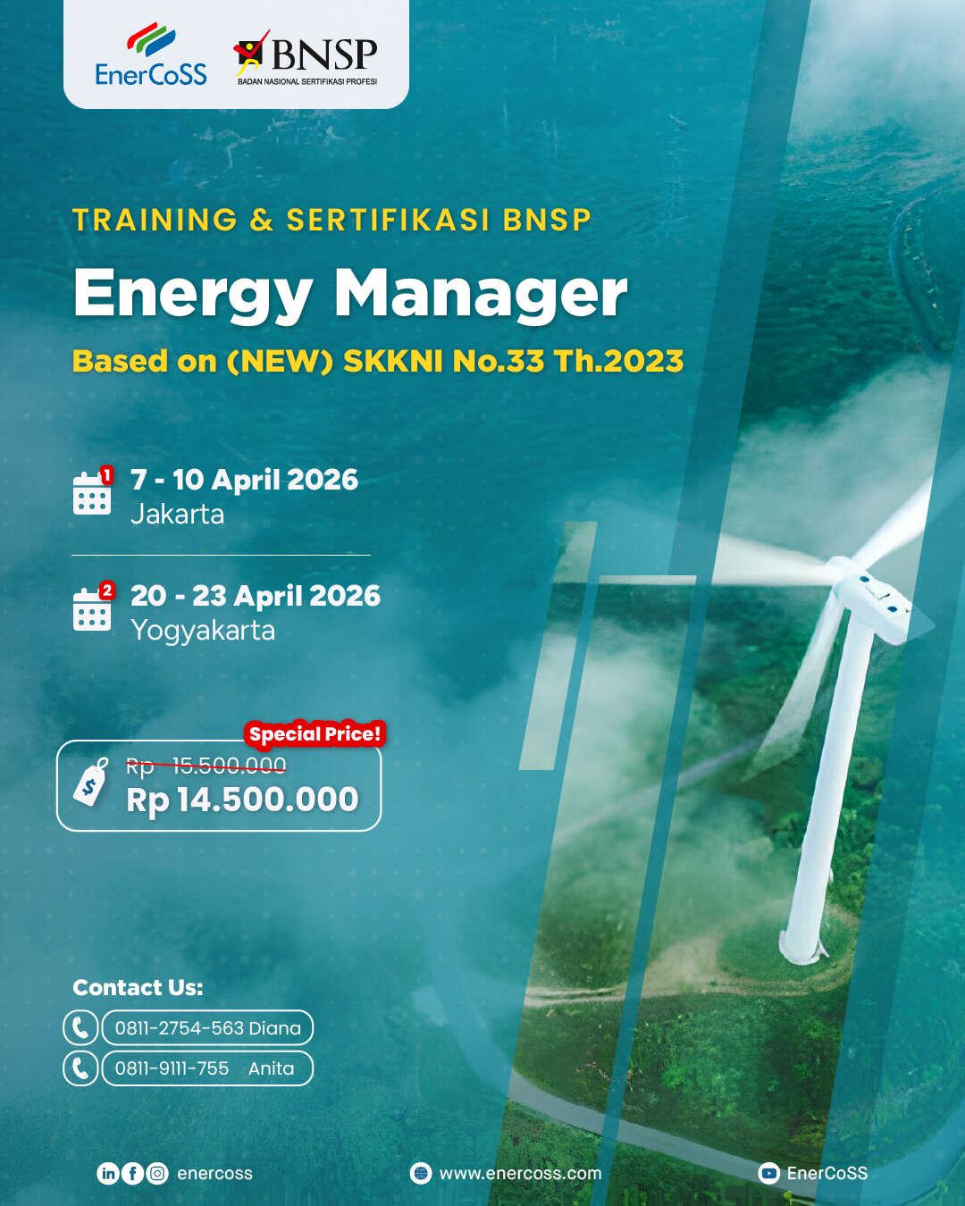 Standar ISO 50001 versi 2011 hanya berlaku sampai tahun 2021 dan wajib di upgrade ke versi 2018.Tenaga Ahli EnerCoSS adalah ketua dari panitia teknis Sistem Manajemen Energi yang terlibat dalam penyusunan standar ISO 50000 series dan bertanggung jawab atas adopsi ISO 50000 series kedalam SNI, sehingga EnerCoSS sangat memahami bagaiman ISO 50001:2018 akan dapat membantu perusahaan dalam menghemat energi. Sejak tahun 2015 EnerCoSS telah membantu lebih dari 15 industri dalam menerapkan sistem manajemen energi ISO 50001 sampai perusahan mampu menghemat total ratusan milyar Rupiah biaya energi. Kami siap membagikan pengalaman ini kepada anda.